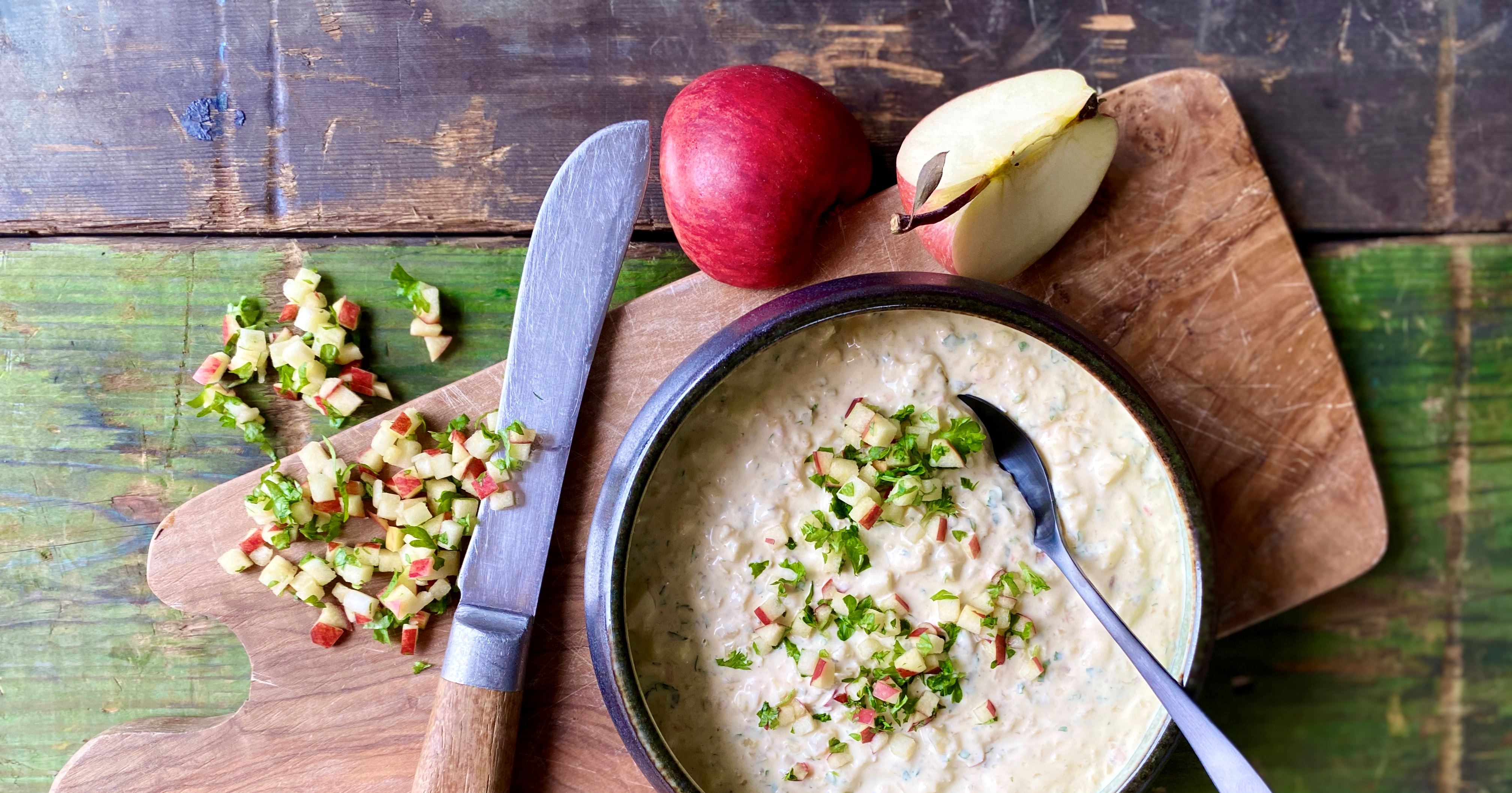 Overrask med den flotte grønne sauce til den festlige valnøddekylling.(Karolines Køkken)