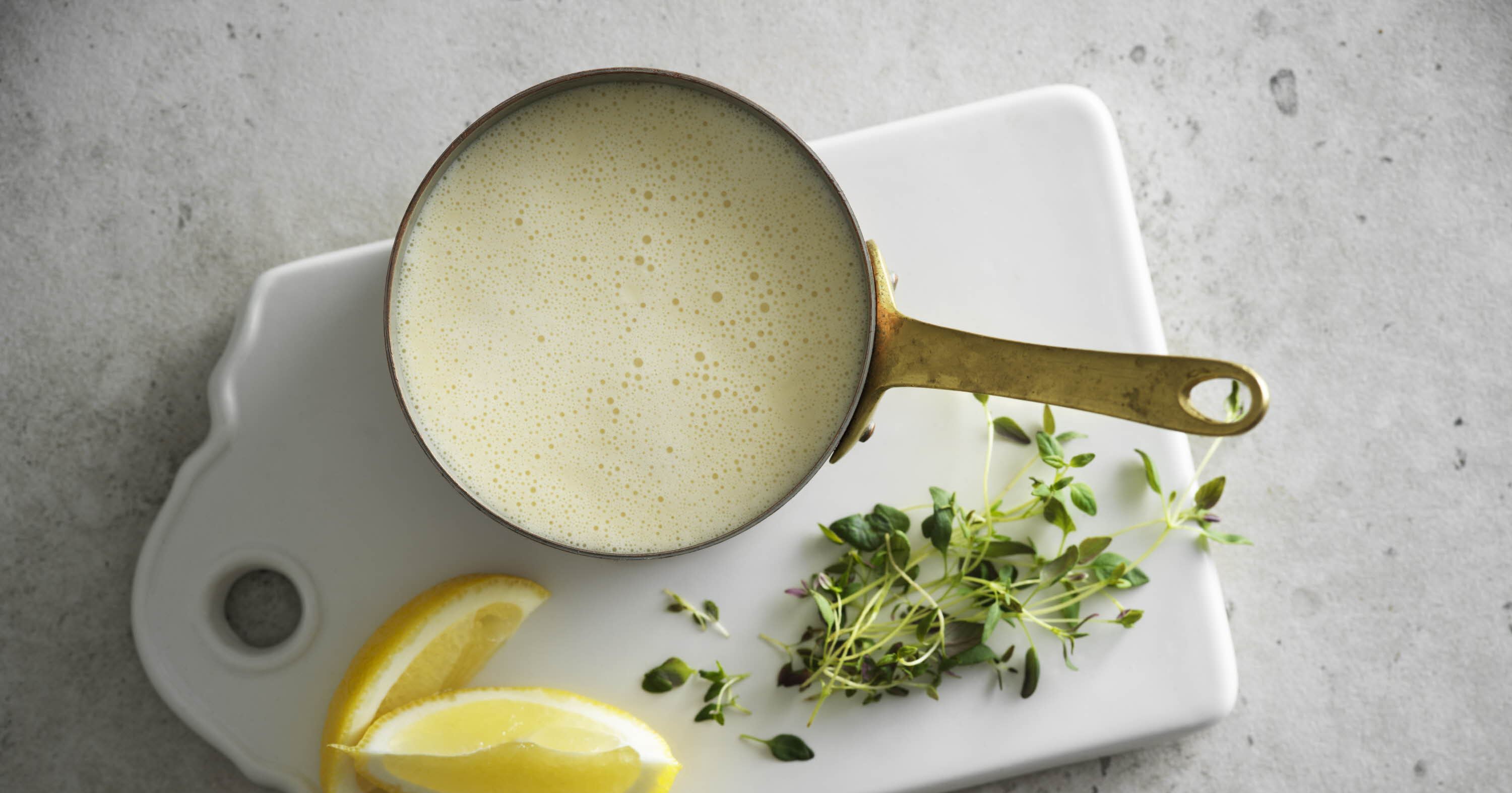 Opskriften på varm smørsauce til fisk og grøntsager er både syrlig og lækker. Den passer godt til dampede foreller, men er også lækker over dampede grøntsager.(Karolines Køkken)