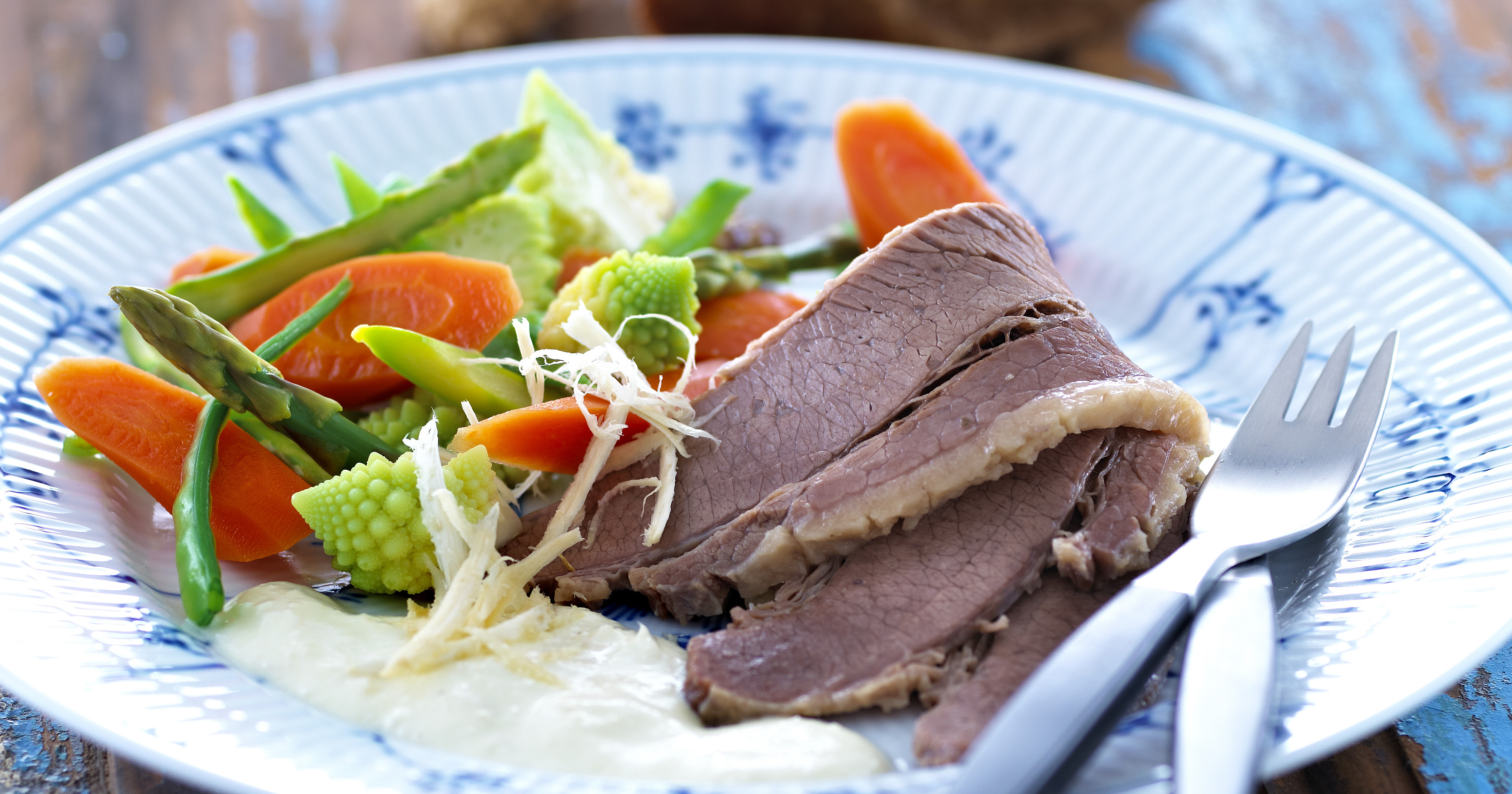 En klassisk forårbebuder lavet fra bunden - kogt høne med friske asparges og estragonsauce. (Karolines Køkken)